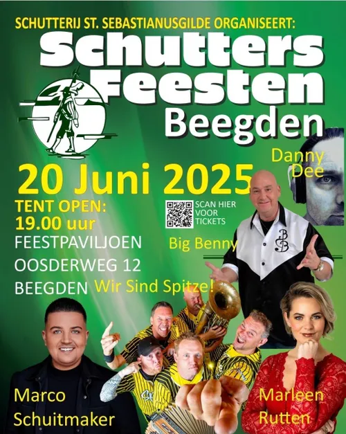 Schuitmaker, Wir Sind Spitze, Big Benny én Marleen Rutten. Samen met DJ Danny Dee zullen zij ervoor zorgen dat het dak van het feestpaviljoen bij Schutterij Sint Sebastianusgilde er helemáál af gaat!