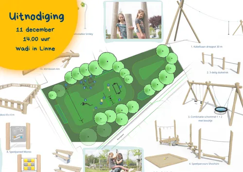 Het idee hiervoor kwam van de inwoners uit Linne. Natuurlijk hebben de kinderen uit het dorp ook geholpen met het ontwerp van de speelplek.