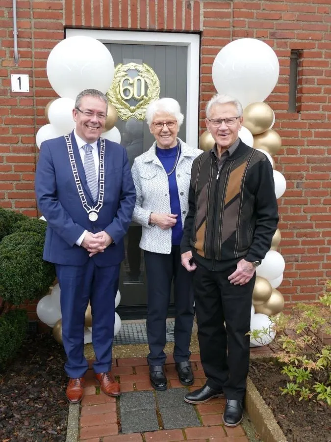 De burgemeester ging bij het diamanten echtpaar op bezoek om hen te feliciteren met deze bijzondere mijlpaal. Hij wenste het paar nog vele jaren samen vol liefde, geluk en mooie herinneringen.