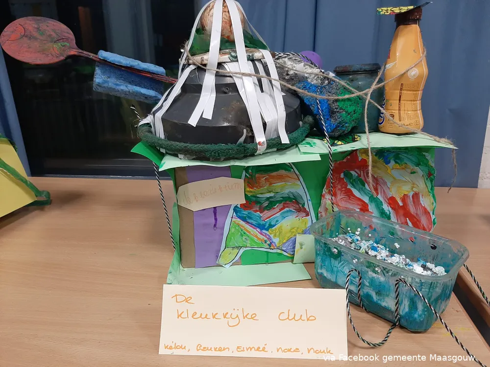 Twee weken lang hadden de kinderen zwerfafval verzameld, dat vervolgens werd gesorteerd en schoongemaakt.