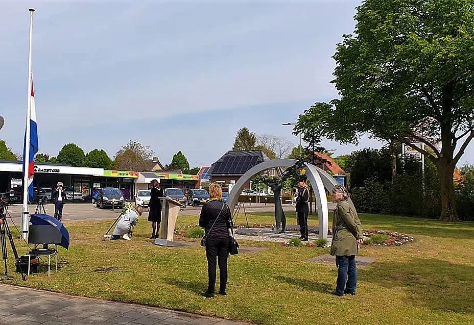 De coronacrisis zorgt voor een wat vervreemdend beeld bij de diverse monumenten, waar vandaag wel kransen worden gelegd maar waar dat meer verspreid over de dag gebeurt.